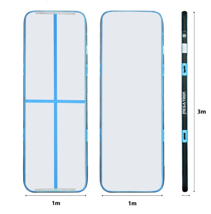Vår blå AirTrack er det perfekte treningsredskapet for gymnaster, cheerleadere, parkourutøvere eller til hjemmetrening. Den gir en trygg, komfortabel og spenstig overflate for ulike akrobatiske øvelser og treningsøkter. Med en størrelse på 3 meter x 1 meter x 0,1 meter er den kompakt nok til å passe i trange rom, men samtidig romslig nok for de fleste hopp- og balanseøvelser.