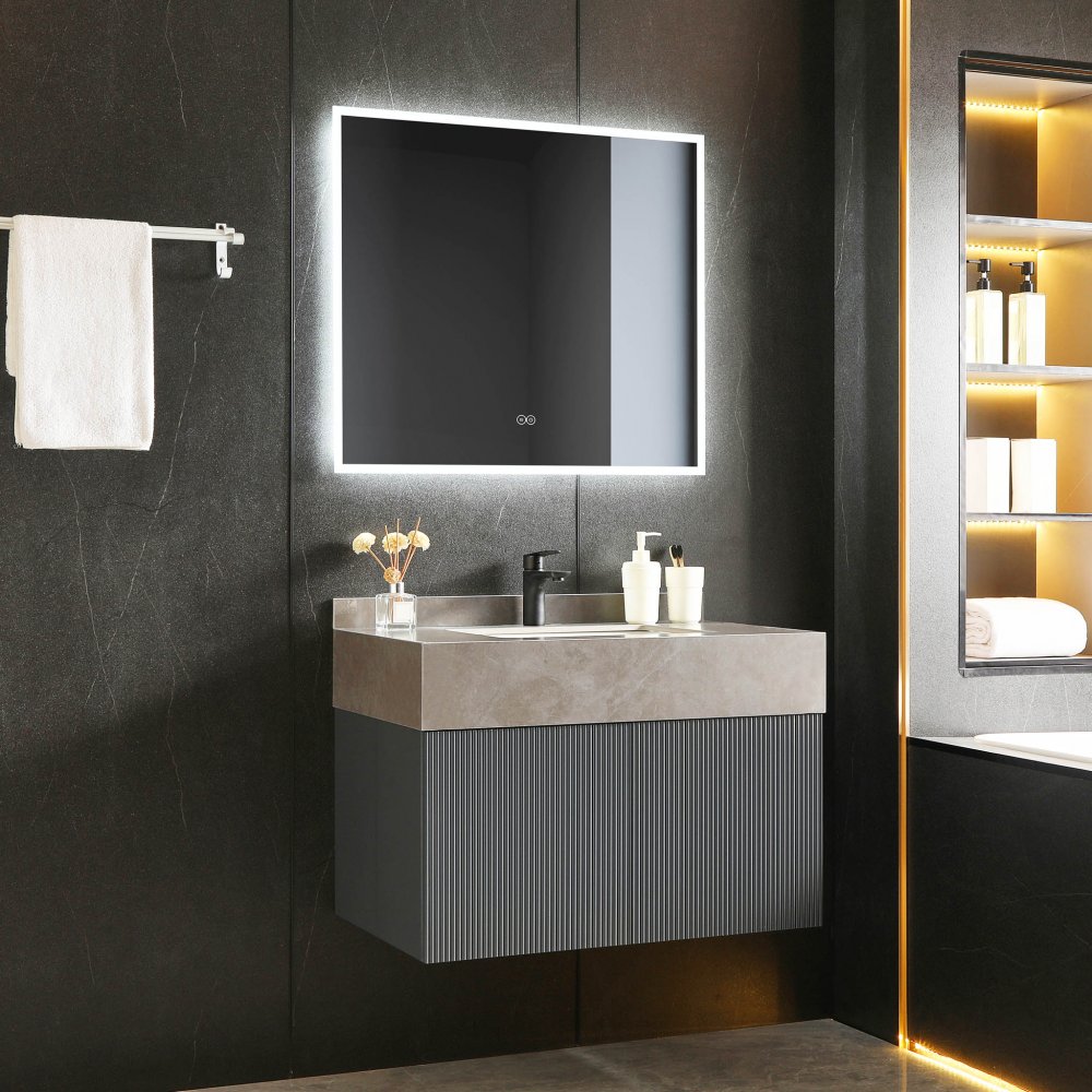 Baderomspakke | Slitesterk sintret stein | LED speil | Cirrus grå