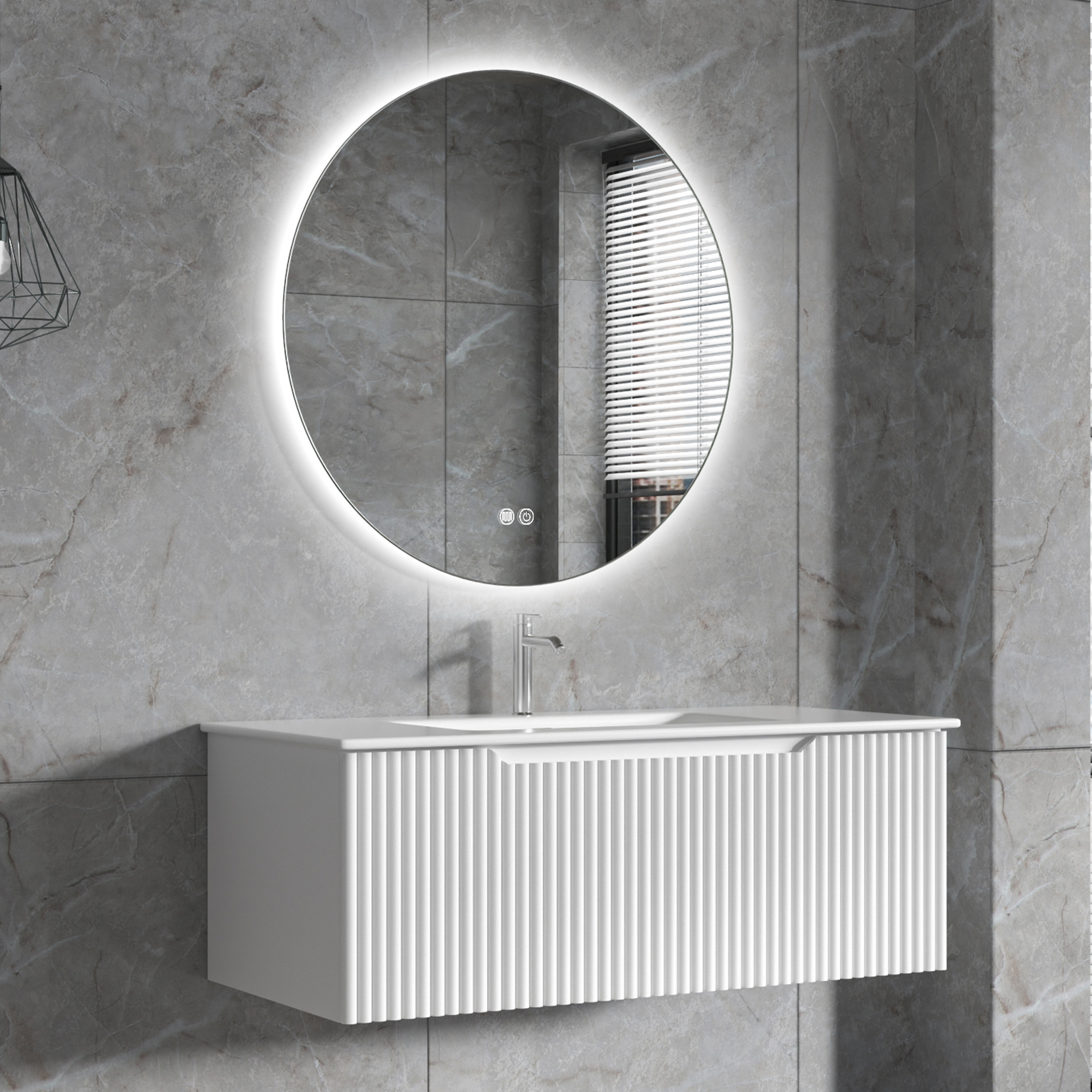 Baderomspakke | Kommode 101cm | Rundt LED-speil | Tuba - Hvit