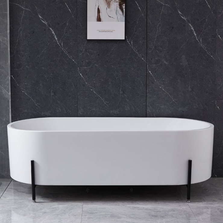 De svarte bena gir badekaret et moderne utseende samtidig som de bidrar til stabilitet ved montering.