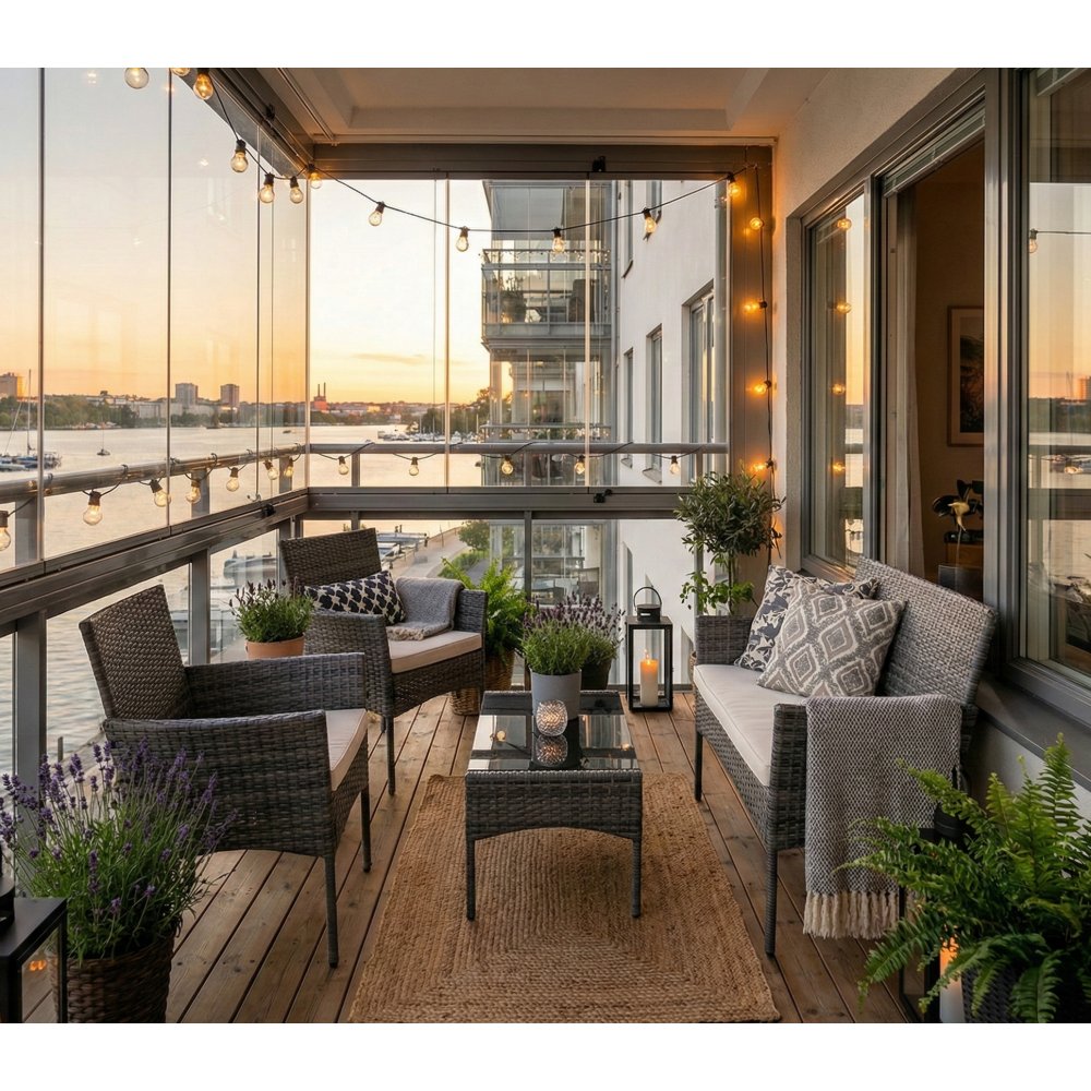 Kompakt og stilrent balkongsett, perfekt for mindre uteplasser