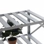 Drivhusbord i ubehandlet aluminium og galvaniserte ben. Bordet har en stabil konstruksjon med avstivere.
