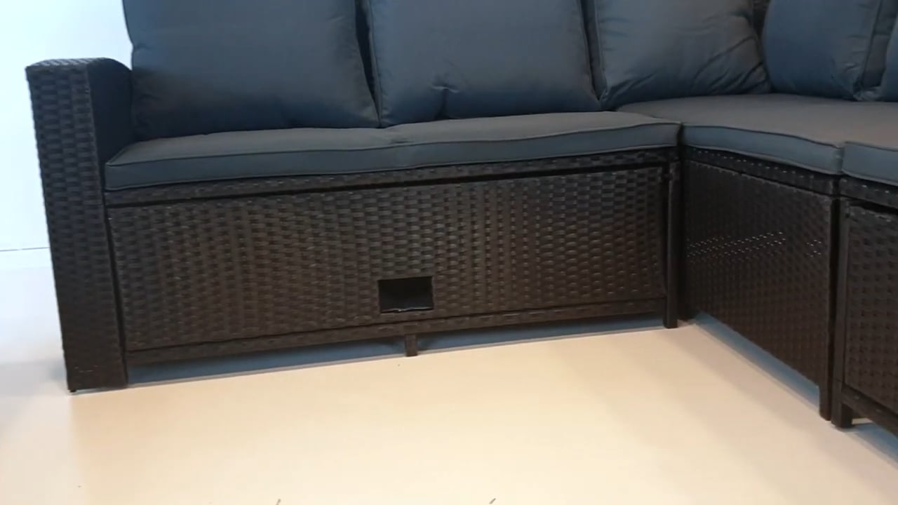 Sofagruppe utemøbler i kunstrotting med innebygd oppbevaring
