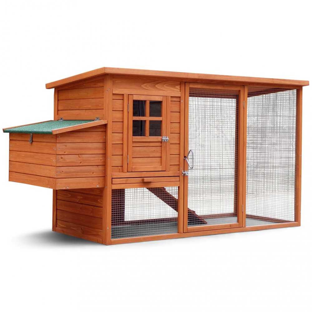 Hønsehus med hønsegård | Lett å rengjøre | Ferdig byggesett | 2x0,7x1m