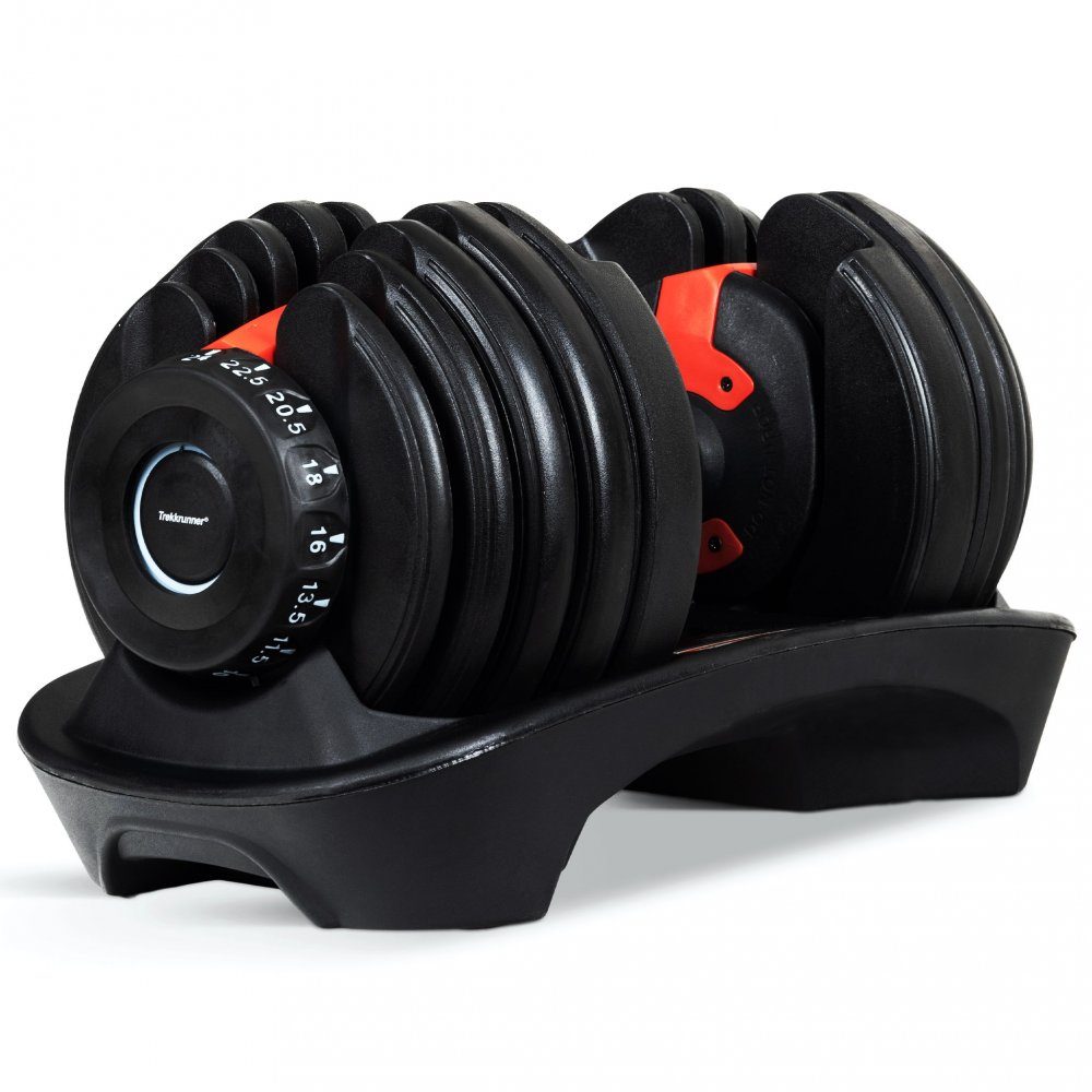 Justerbar hantel fra Trekkrunner av høyeste kvalitet. Med denne hantel kan du enkelt justere vekten mellom 2,5 til 24 kg i 15 forskjellige nivåer. Denne hanteln erstatter derfor 15 separate hantler, noe som sparer både penger og plass. En justerbar hantel åpner opp muligheten for en allsidig treningsrutine da du kan tilpasse vekten avhengig av øvelse. Hantlen er laget av stål og sterkt nylon.
