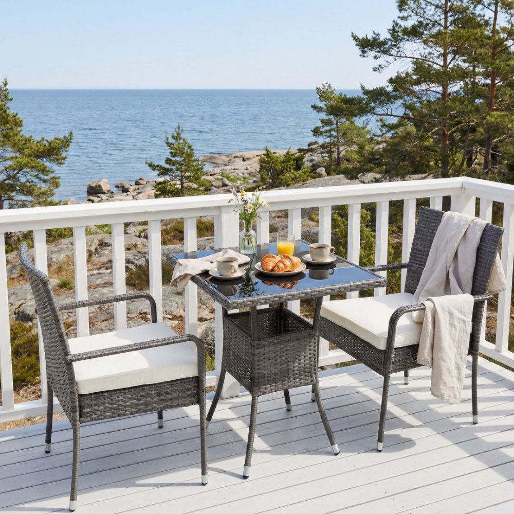 Kafésett utemøbler til balkong i syntetisk rotting