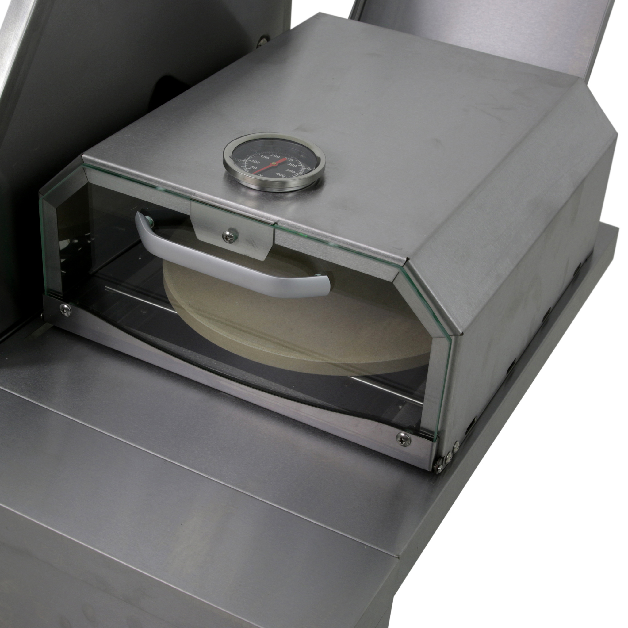Mange som har gassgriller bruker ikke sidebrenneren til noe, noe vi synes er synd. Med denne modulen gjør du sidebrenneren til en pizzaovn! Fest en pizza eller stek et brød på sidebrenneren mens kjøttstykket steker på hovedbrenneren. Med denne modulen får du alt du trenger for å lage den perfekte pizzaen, men til en mye lavere pris enn om du kjøper en egen pizzaovn. Trikset for å få den perfekte pizzaen er å nå virkelig høye temperaturer, noe du enkelt kan gjøre med Metalcrafts fleksible sidebrenner pizzaovn. Du kan enkelt holde styr på temperaturen med det innebygde termometeret.