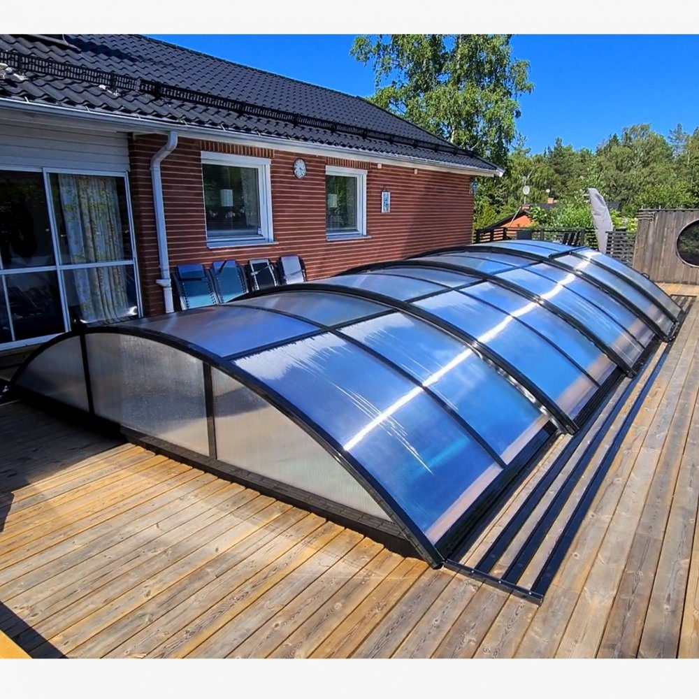 Bassengtak 4x8m med sidodörr | Solid polykarbonat 4mm | Svart