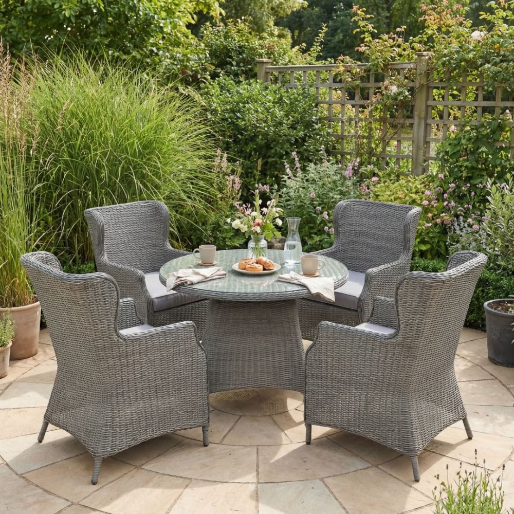 Rund hagemøbelgruppe | 4 stoler | Puter inkludert | Jacksonville grå