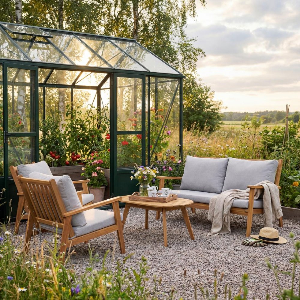 Skap en komfortabel og stilren uteplass med en loungegruppe som kombinerer naturlige materialer, funksjon og moderne design.