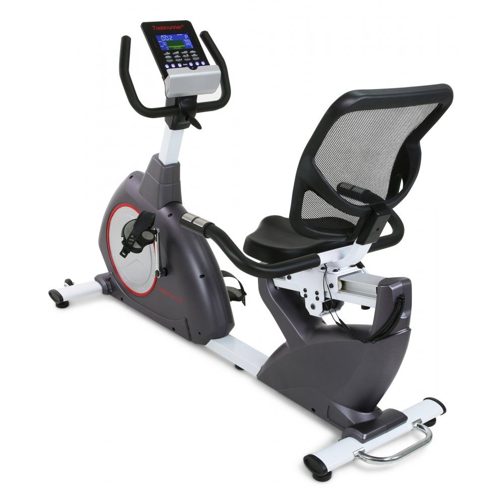 Sittende modell trimsykkel (liggesykkel) som er søstermodell til TR8718i, men i liggende design. Kraftig bygd luksusmodell av sittende treningssykkel i stilig design med stille magnetisk bremset motstand på 6 kg. Brukervennlig fargedisplay som viser treningstid, distanse, puls, kroppsfett, målpuls, effekt (W) og kaloriforbruk. Dette lar deg enkelt holde oversikt over treningen og fremgangen din.