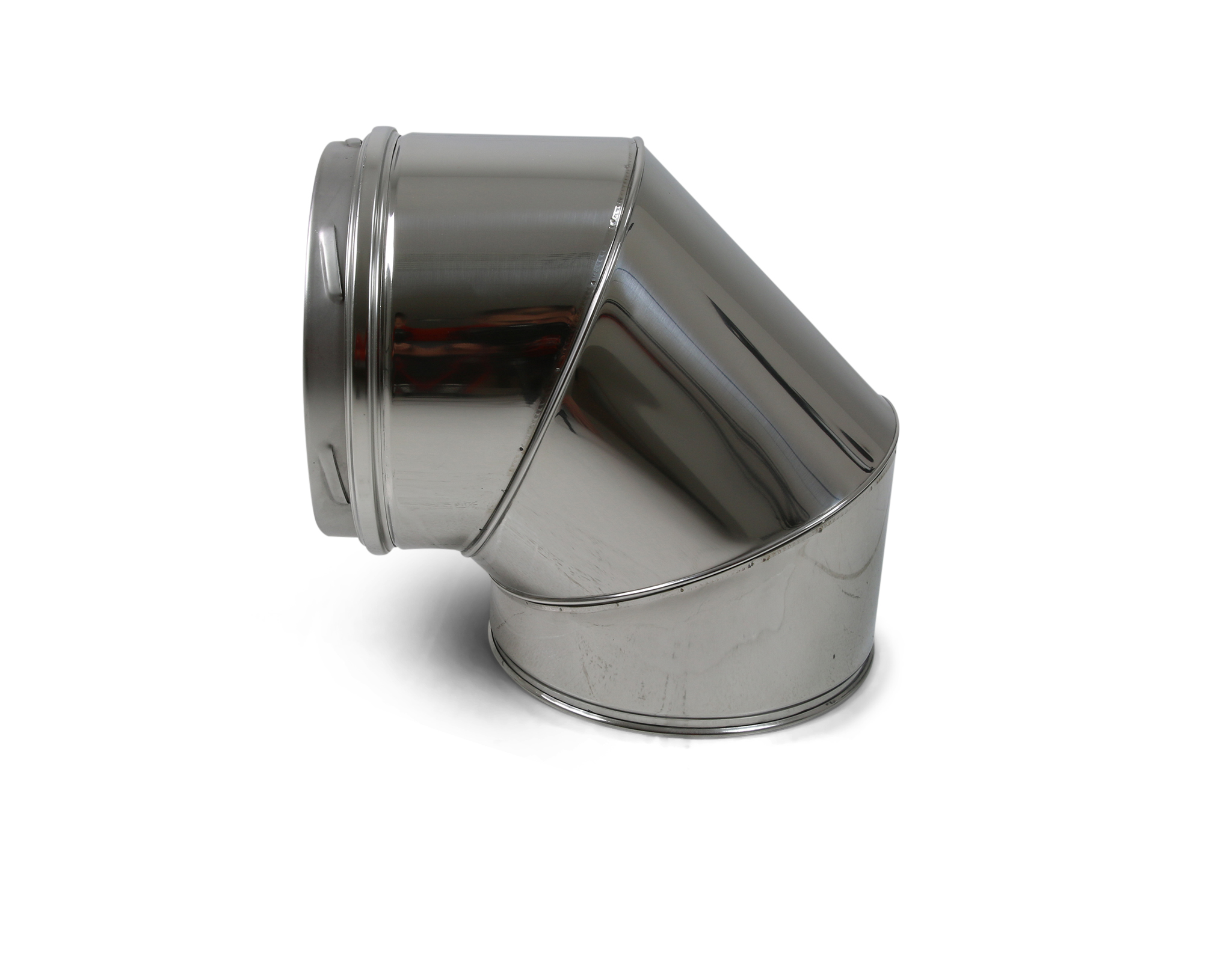 Modulskorstein - 90 graders vinkel. Rustfritt stål. 25 mm isolasjon. Passer til 150 mm skorsteinstilkobling.