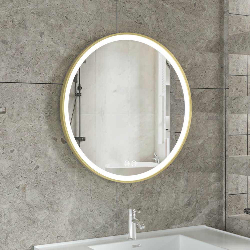 Stilig LED-speil | 60x60 cm | Gull aluminiumsramme | Antidugg og berøringskontroll