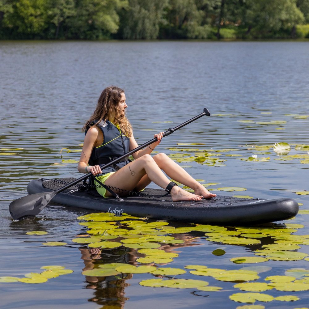 SUP står for "stand up paddle", men har du noensinne ønsket at du også kunne sitte like komfortabelt på en slik brett? Da er denne paddle board designet med deg i tankene. Den kommer nemlig med en behagelig stol, og dobbler således som en "sit down paddle"-brett - den perfekte aktiviteten for deg som liker valgmuligheter og høyest mulig komfort!