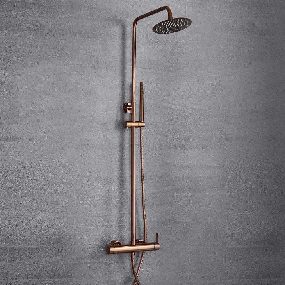 Hånddusjen er utstyrt med en 1,5 meter lang dusjslange i rustfritt stål og et håndtak i messing med en kul gullfinish. Dusjstangen har en justerbar holder for hånddusjen som kan heves og senkes og som enkelt kan monteres på veggen med den medfølgende veggfestet som ikke ruster og er lett å rengjøre. Takdusjen er romslig med en diameter på 20 cm og er laget av rustfritt stål for best holdbarhet. Nyt en luksuriøs regndusj som tar tankene til tropene.