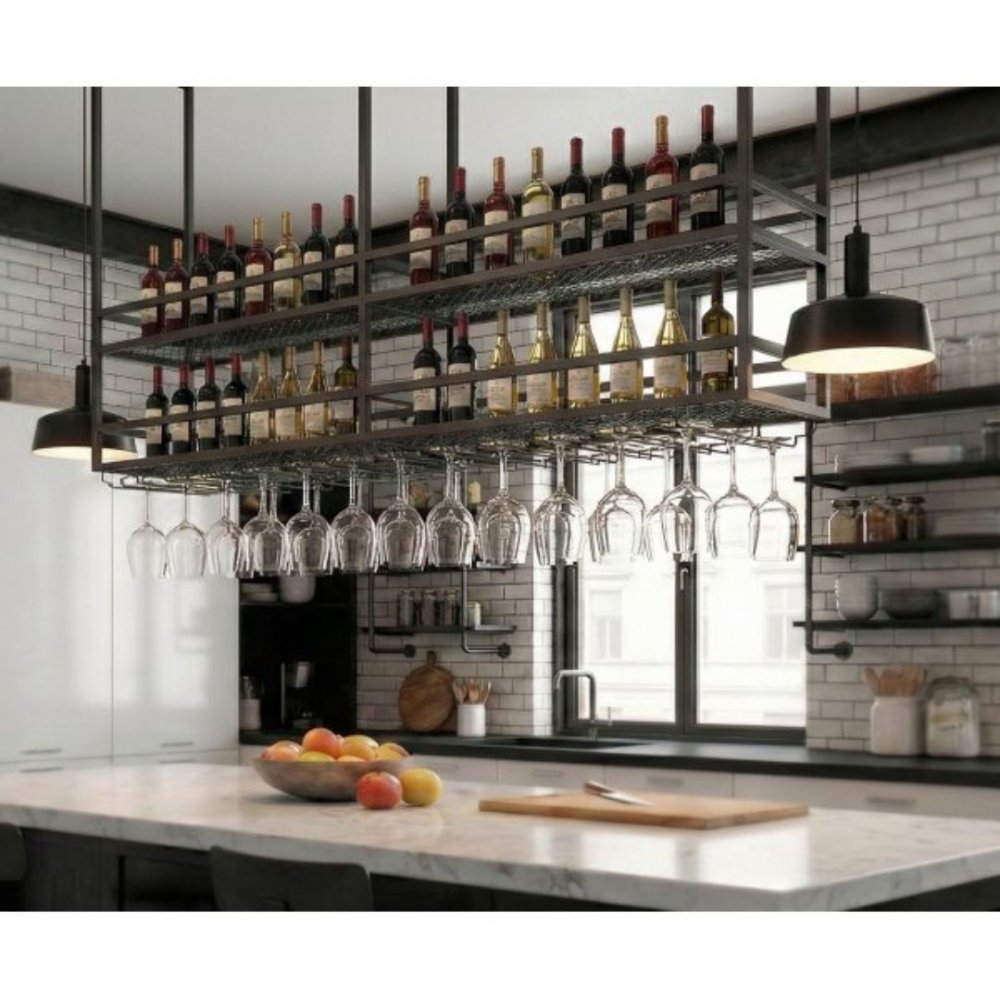 - Elegant takhengt vinhylle for kjøkkenøy og bardisk