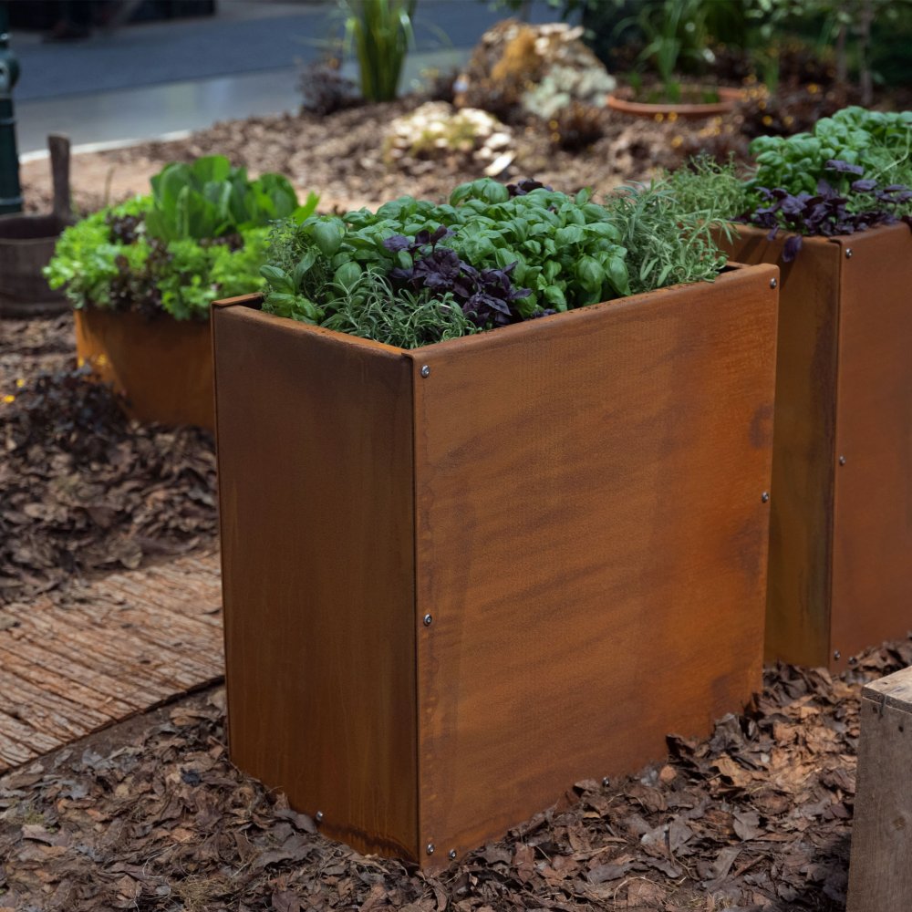 Cortenstål er et tøft og holdbart materiale som ikke trenger å behandles og som takket være sin rustbestandige overflate kan stå ute året rundt. Når corten utsettes for ytre påkjenninger av vær og vind, begynner overflaten å ruste, akkurat som alle andre typer stål. Den avgjørende forskjellen er at overflaterusten omgjøres til et beskyttende lag som fester seg til metallet og hindrer fuktighet i å trenge inn, noe som stopper korrosjonsprosessen. Dette gjør krukken optimal for utendørsmiljø.