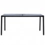 Stilren og elegant spisegruppe i kunstrotting til utendørs bruk. Bord og 6 stoler med armlener er inkludert. Bordet er 160 cm langt og har to 5 mm tykke glassplater av temperert svart glass. Rottingen er håndvevd i en tett svart veving.