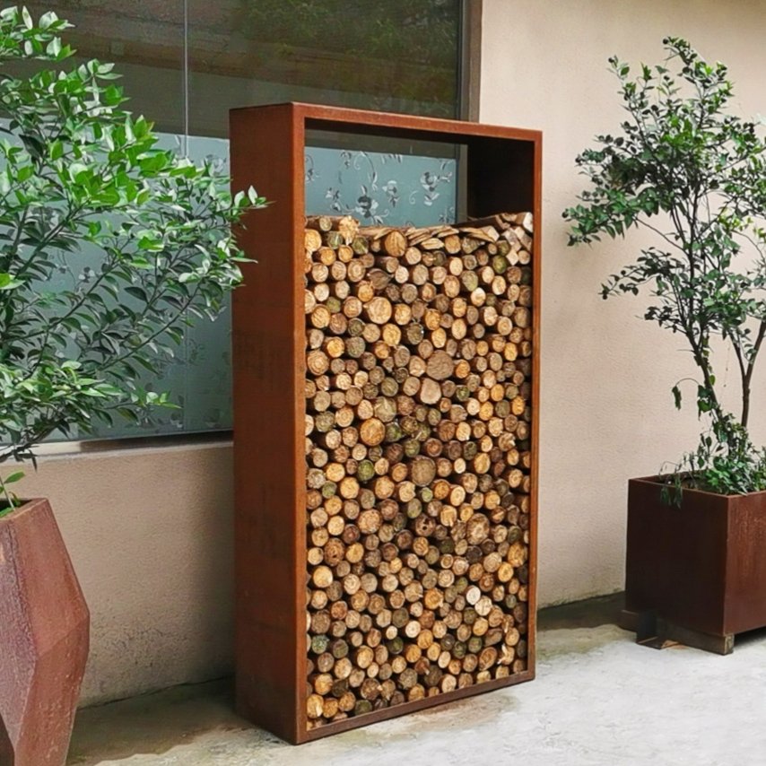 Cortenstål er et slitesterkt og holdbart materiale som ikke trenger behandling og som takket være sin rustbestandige overflate kan stå ute året rundt. Når corten utsettes for ytre påkjenninger av vær og vind, begynner overflaten å ruste, akkurat som alle andre typer stål. Den avgjørende forskjellen er at overflaterusten omdannes til et beskyttende lag som fester seg til metallflaten og forhindrer at fukt trenger inn, noe som stopper korrosjonsprosessen. Av denne grunn er en vedhylle i corten spesielt godt egnet for utendørs brenning. En annen stor fordel med å velge cortenstål er at materialet er varmereflekterende og utrolig slitesterkt, noe som gir maksimal brannsikkerhet.